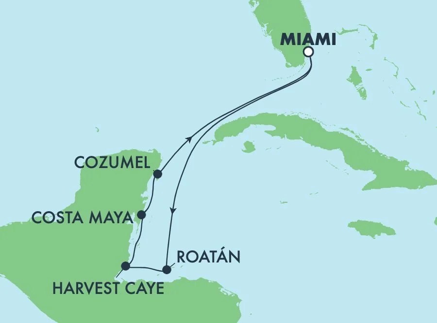 🌴 Itinerary: Western Caribbean (Miami • Roatán • Harvest Caye • Costa Maya • Cozumel)
